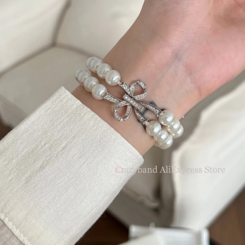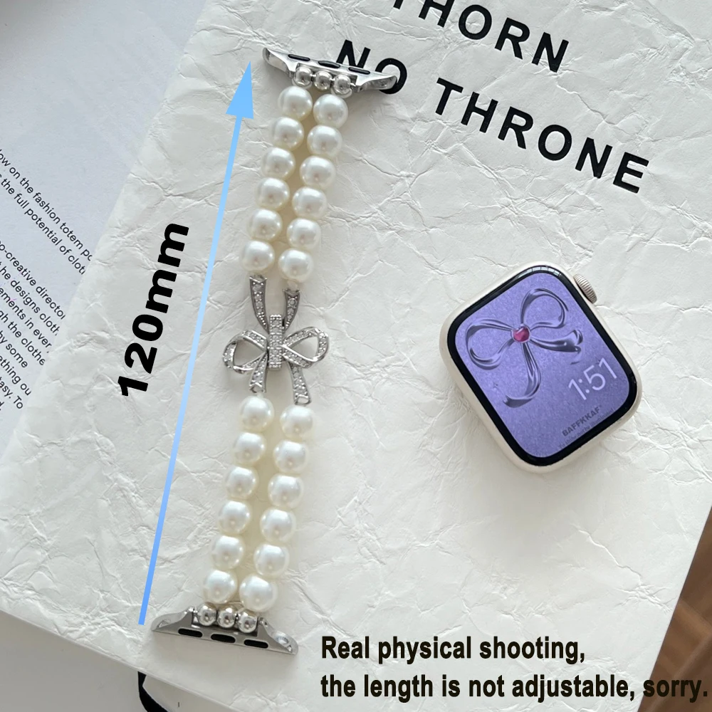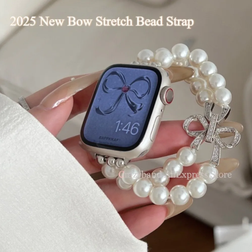 New Bow Stretch Beaded Strap Women's Watch Strap for Apple Watch 38/40/41/42/44/45/46/49mm for Iwatch 9 8 7 6 SE Bracelet