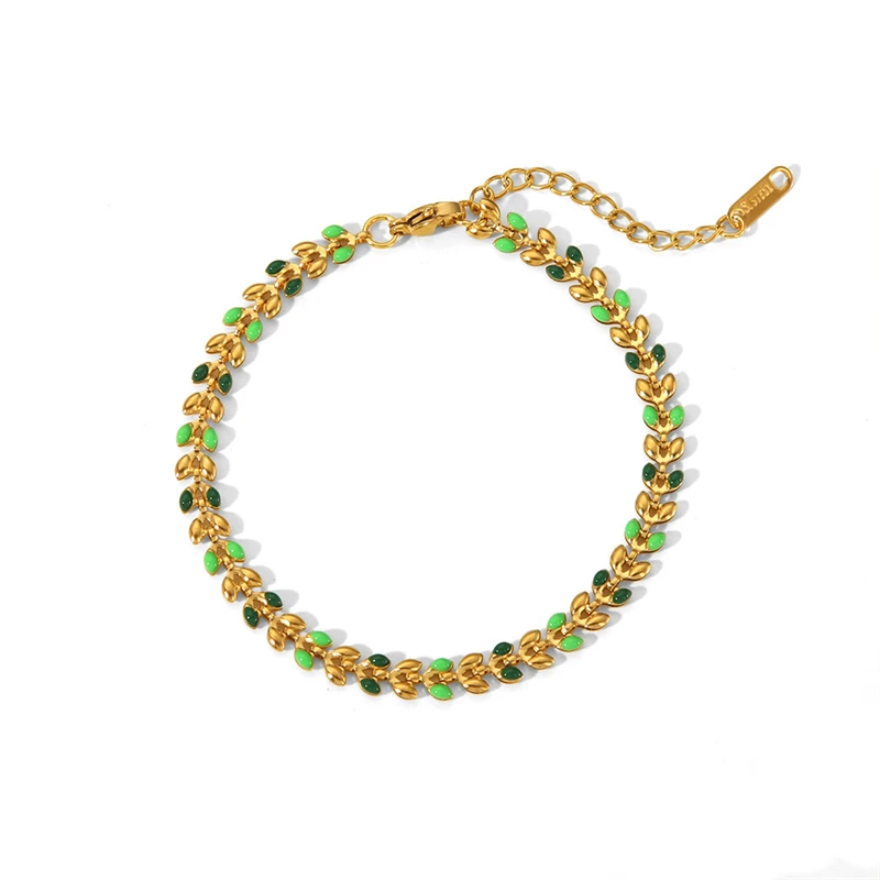316L Stainless Steel New Fashion Fine Jewelry 3 Colors Oil Drip Wheat Ears Olive Branch Shape Charm Chain Bracelets For Women