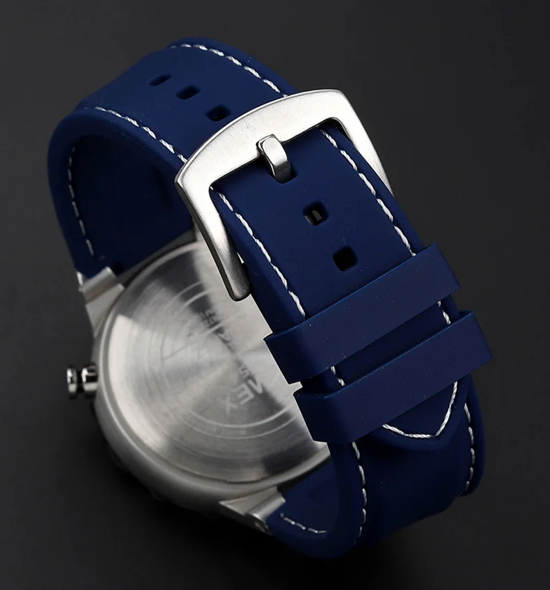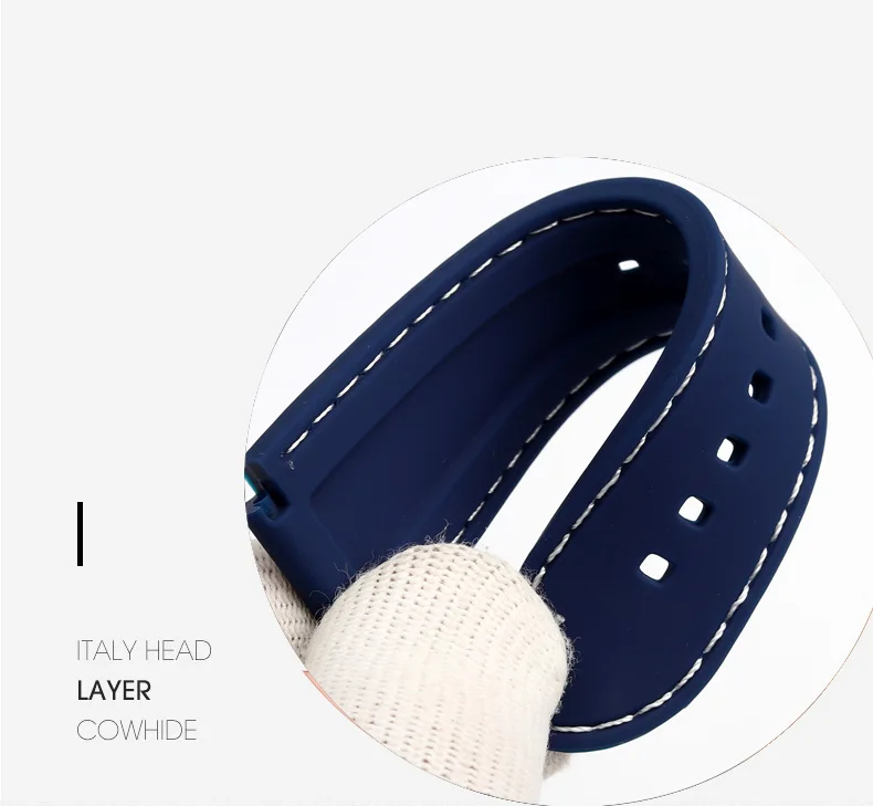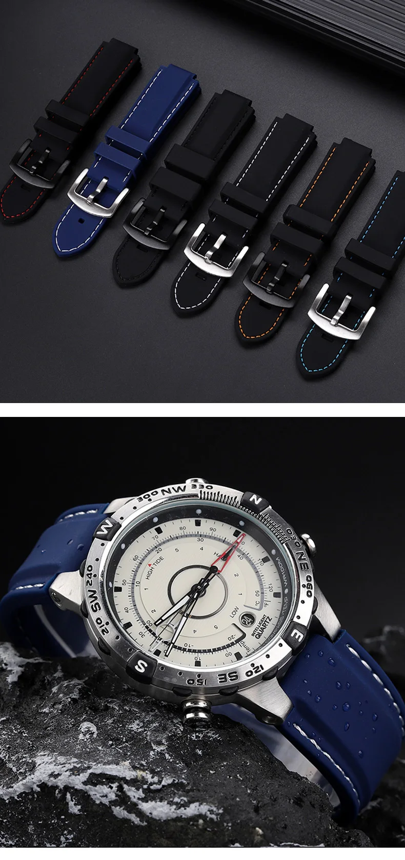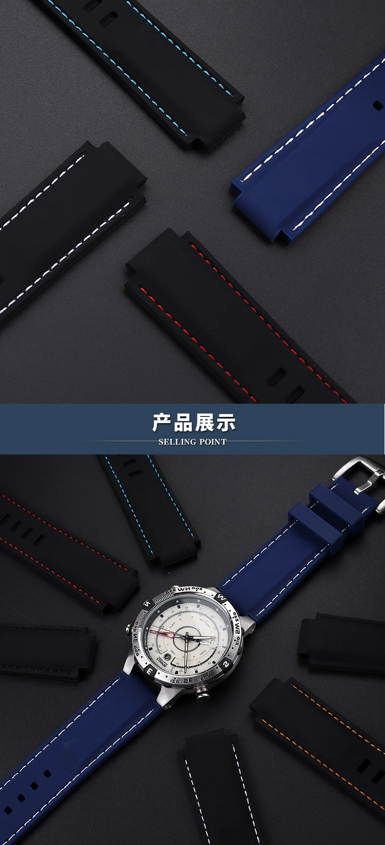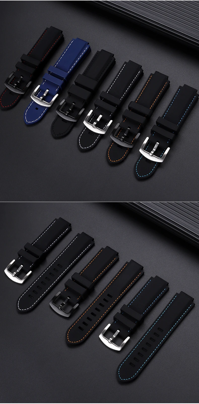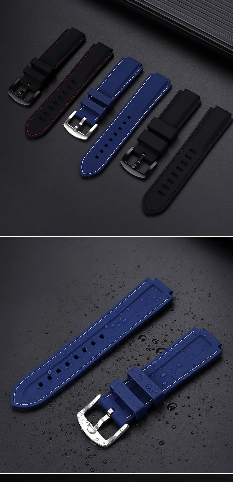 Men's waterproof soft Silicone Rubber Watchband strap with tools Screw pins