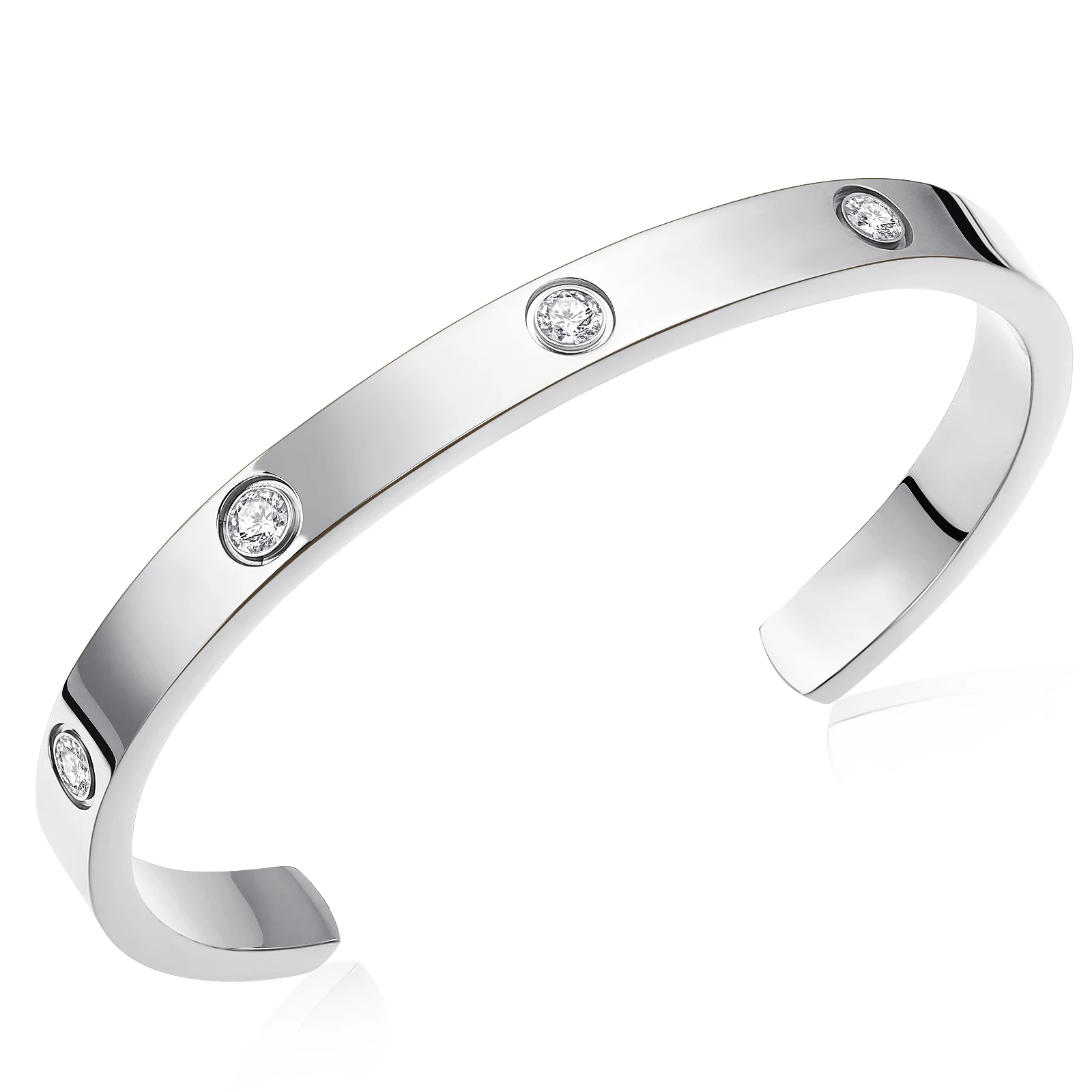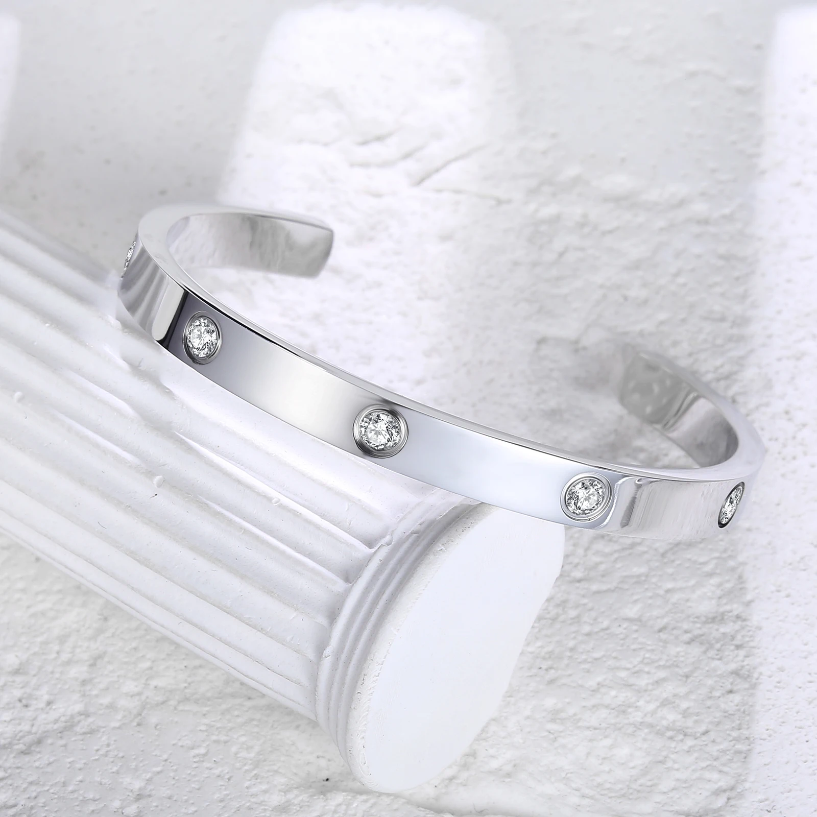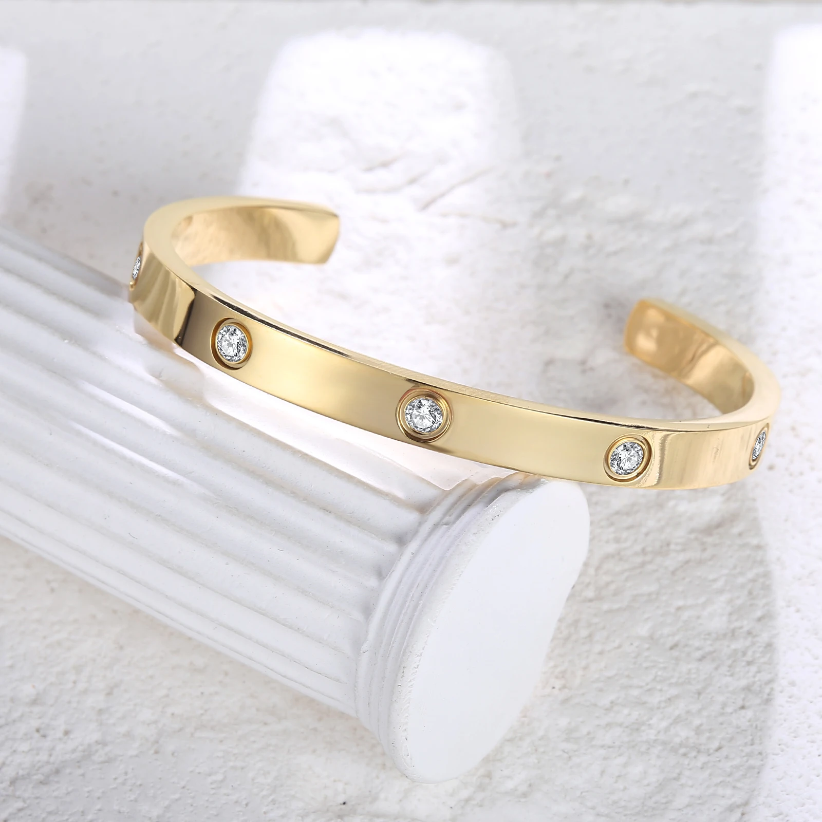 Gold Plated Bracelet with Cubic Zirconia Stones Stainless Steel Bangle Minimalist Cuff Love Charm Bracelets for Women