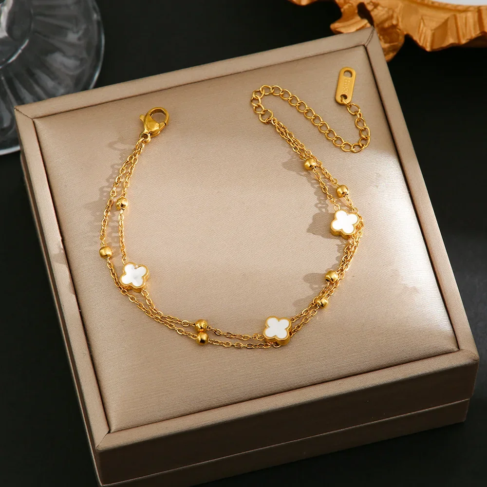 Four-Leaf Titanium Steel Bracelet Lucky Grass Versatile Elegant Hand Jewelry