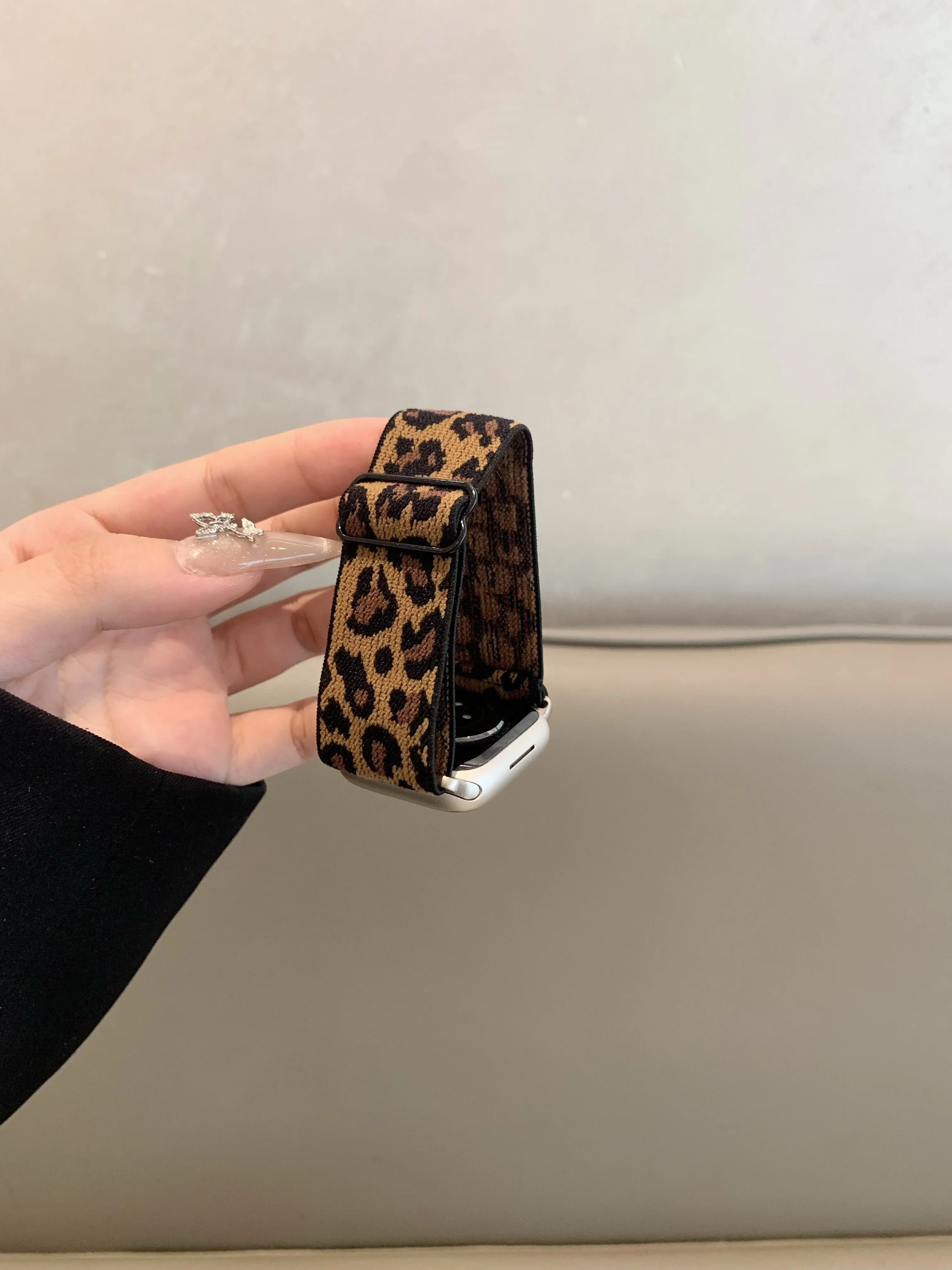 Leopard Stretchy Nylon Watch Band Compatible With iWatch Adjustable Leopard Strap For Apple Watch Series 7 6 5 4 3 SE