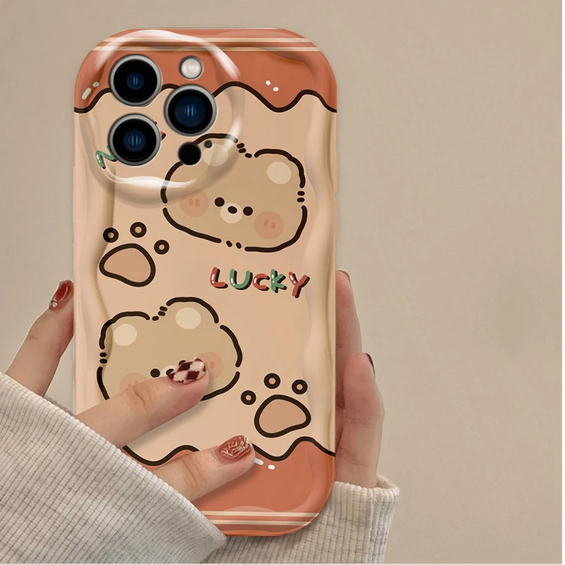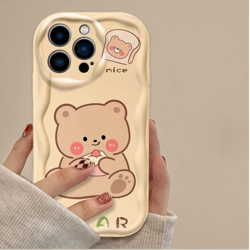 Lovely Coffee Bear Silicone Printing Phone Case for IPhone 16 15 14 13 12 11 Pro Max Plus 16E XR XS X 7 8 Wavy Shockproof Cover